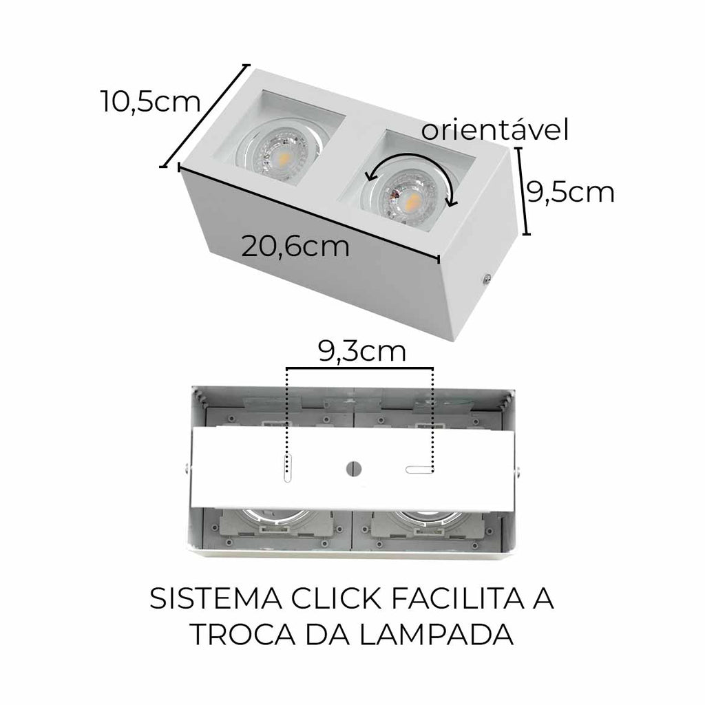 Plafon Spot Sobrepor Box Duplo Branco p/ 2x MR16 Starlumen ST2945
