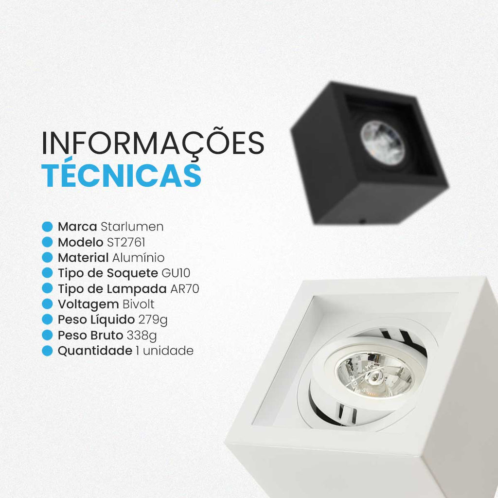 Plafon Spot Sobrepor Box em Alumínio P/ AR70 Starlumen ST2761