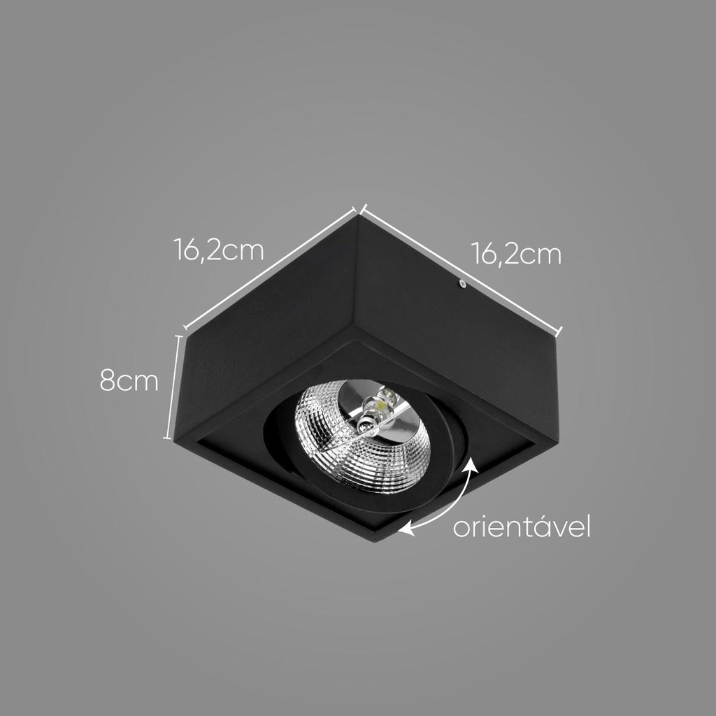 Plafon Spot Sobrepor Quadrado Preto Box P/ AR111 Orluce ST2763