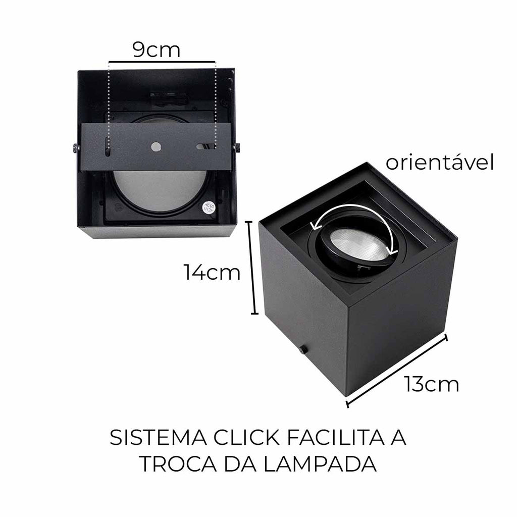 Plafon Spot Sobrepor Teto Box Preto P/ PAR20 Starlumen ST2755