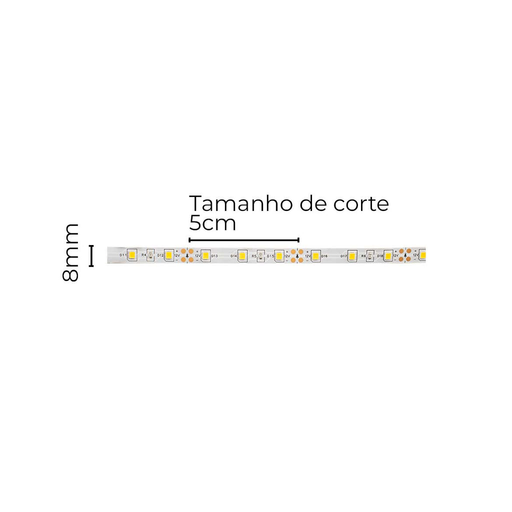 Rolo de Fita LED 5 Metros 3528 Adesiva Branco Quente 60LEDs/m ST3067