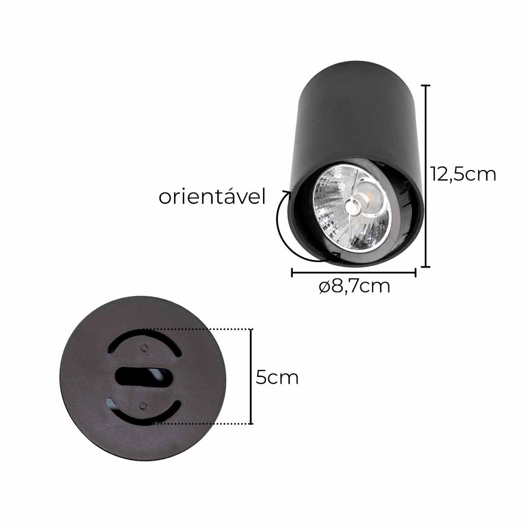 Spot Sobrepor Redondo 8,7cm em ABS P/ AR70 GU10 SZ293S ST3034