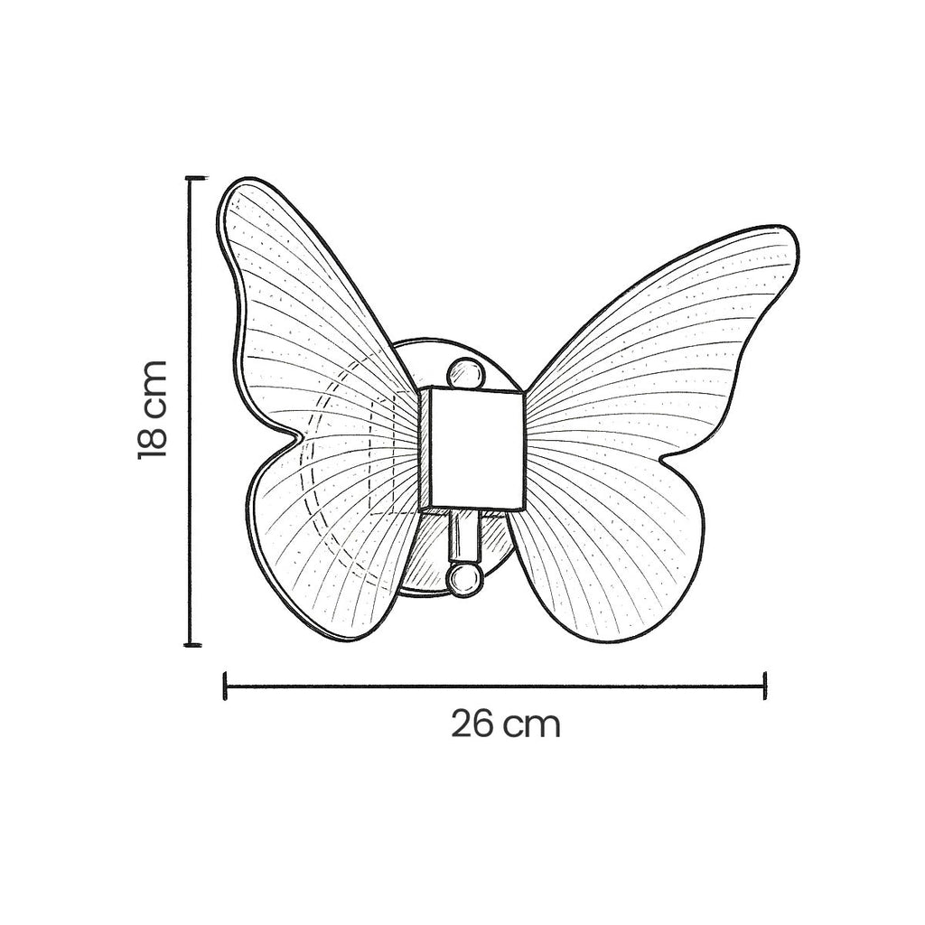A Arandela Borboleta Sindora DCB02158D combina design moderno e toque de sofisticação com acabamento em metal dourado e asas de acrílico transparente. Ideal para quem busca iluminação decorativa com charme e leveza, a peça emite uma luz quente e aconchegante de 3000K, perfeita para salas, cabeceiras de quartos, ambientes infantis ou para criar um clima romântico e acolhedor.