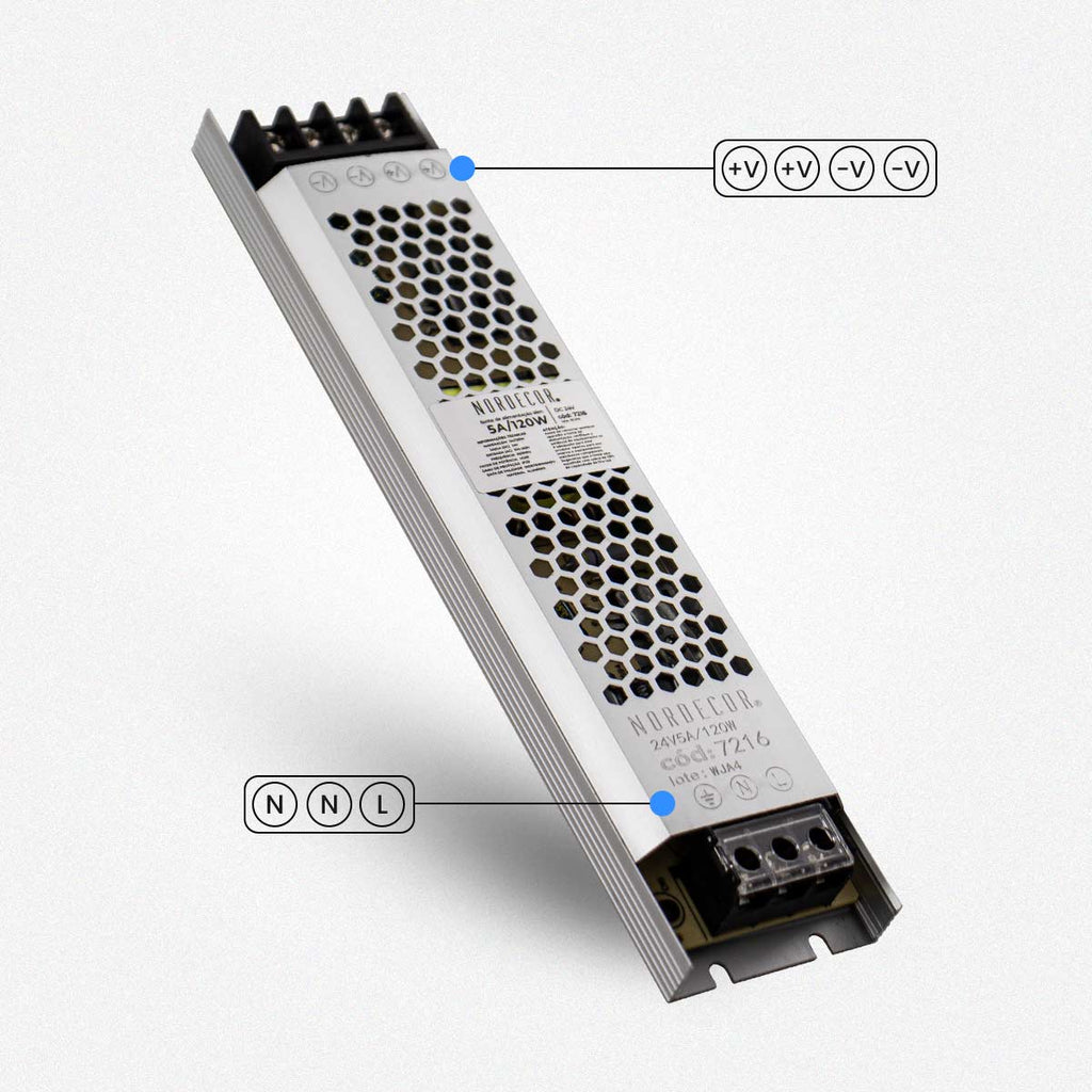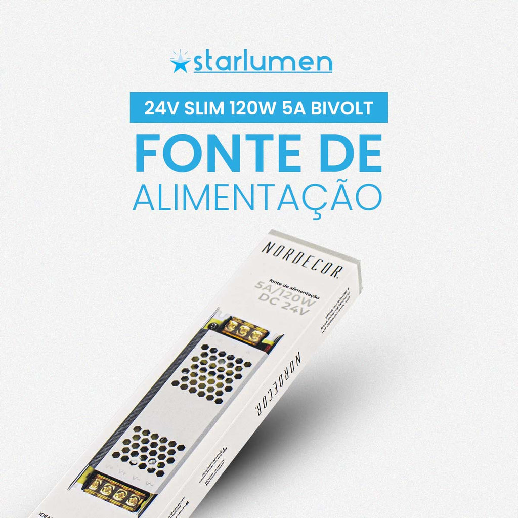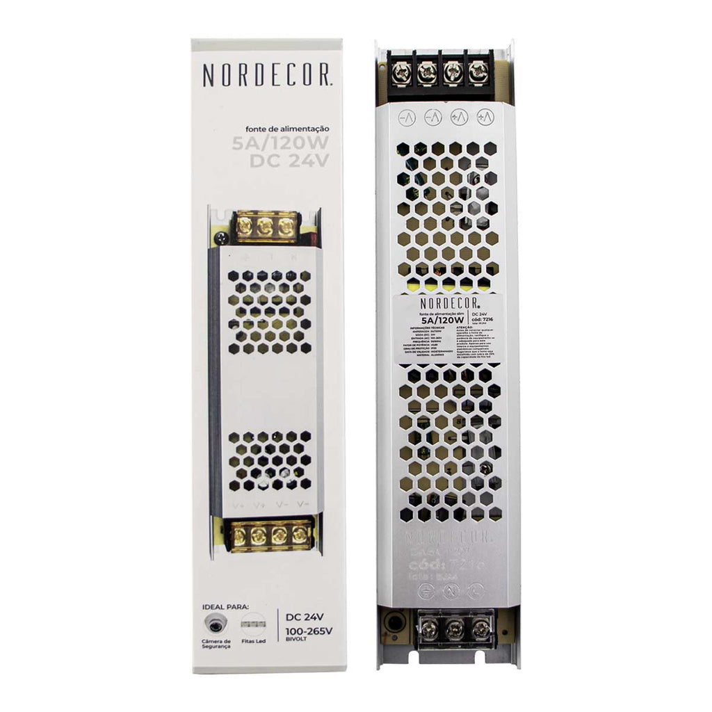 O que vem na caixa? | 01 Fonte de Alimentação Slim 24V 5A 120W 7216 Nordecor ST3078 |