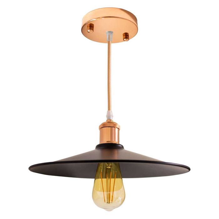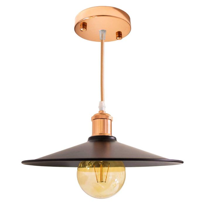 Pendente Chapéu Chinês Metal Cúpula Preta 26cm E27 St1375-Rosé