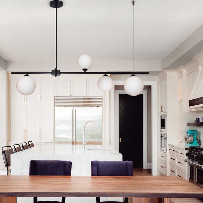 Pendente Mesh Preto 4 Globos Brancos Vidro Quality PD1328PT-BR St2110