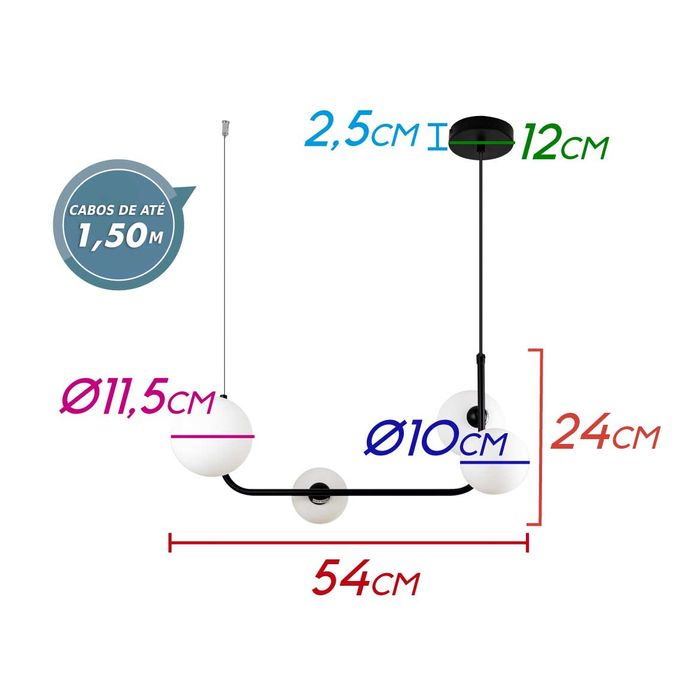 Tamanho Aproximado (LxAxP) 54 cm de comprimento x 24 cm de altura