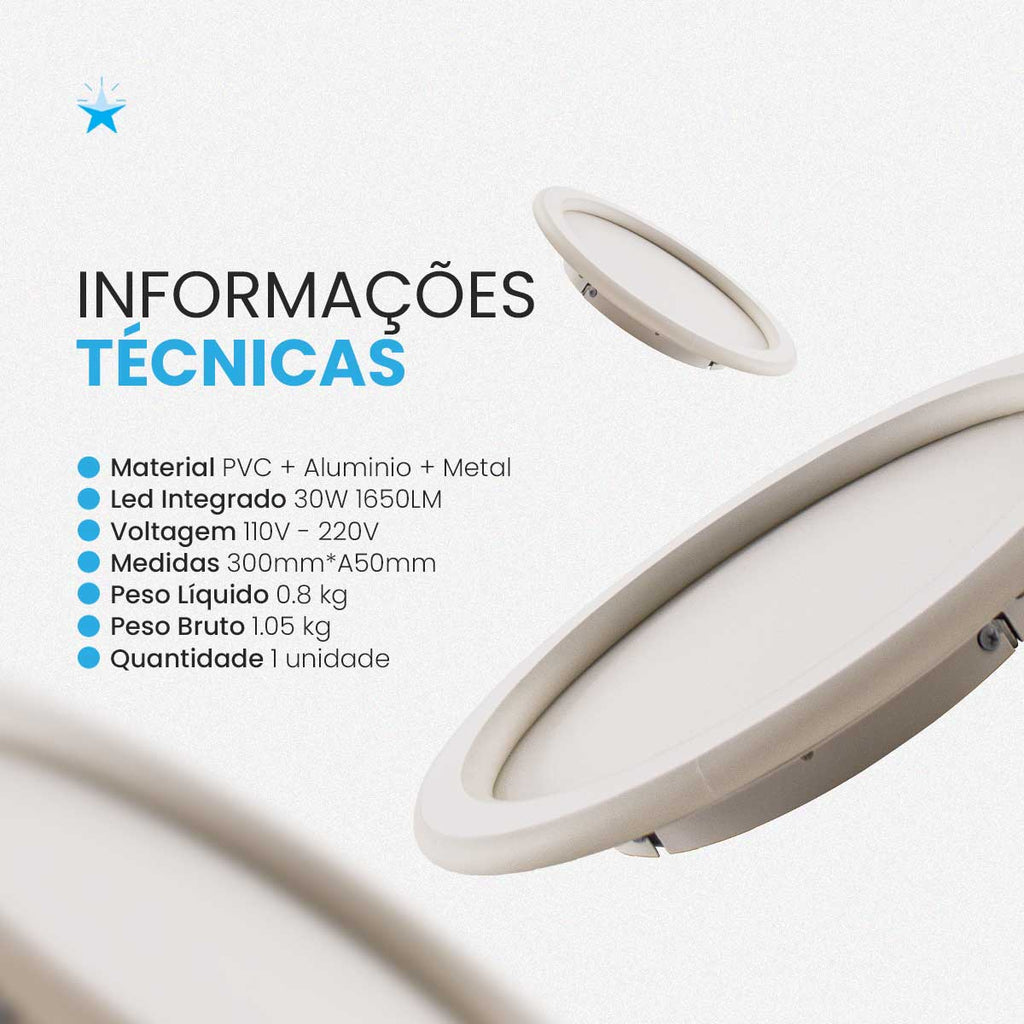 O que vem na caixa? 01 Plafon LED Slin 30CM ST3138