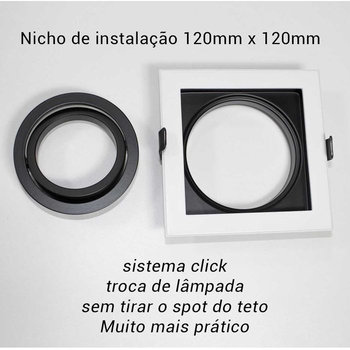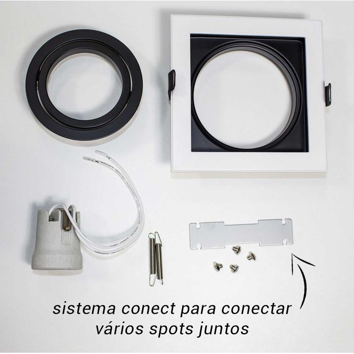 O que vem na caixa? 01 Spot Recuado Embutir Bella Conecta Branco com Preto Par20 E27 Ns7201P St712